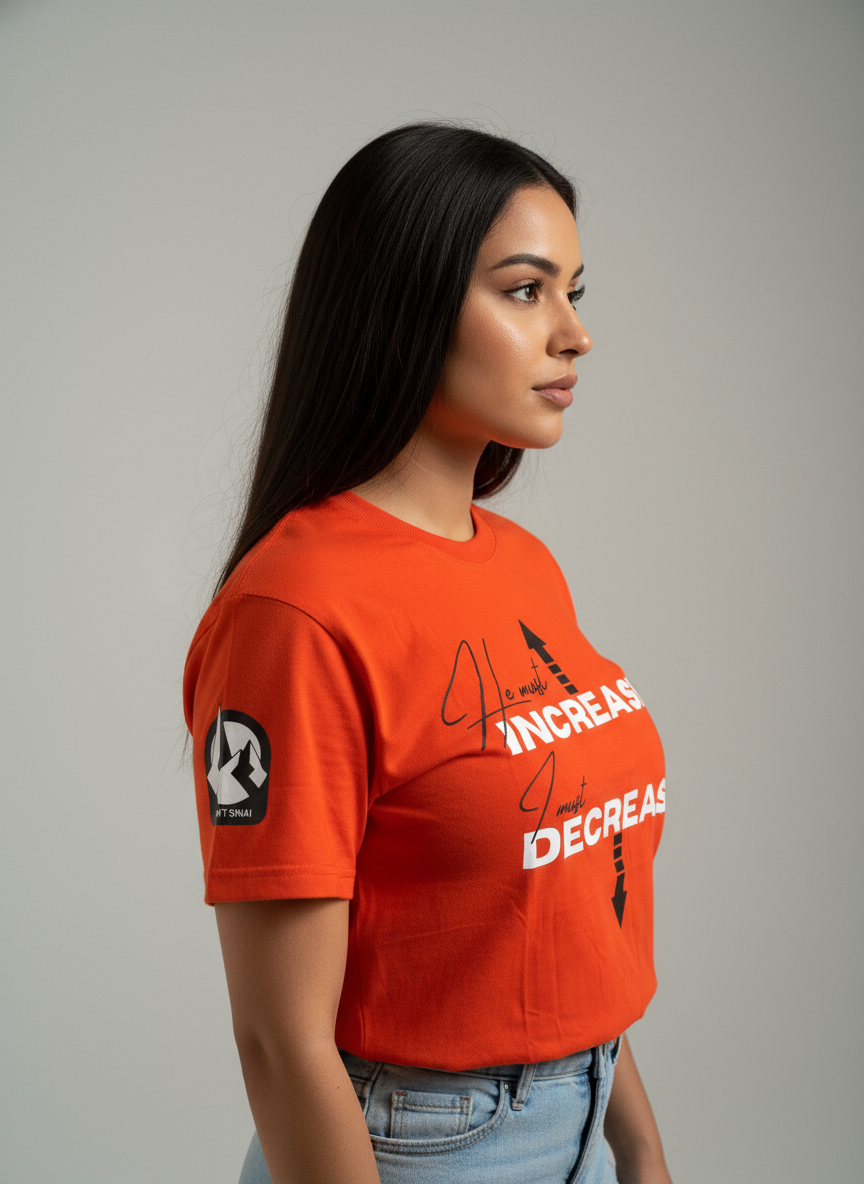 Embrace a life of purpose and deep humbleness with the Mount Sinai “He Must Increase” T-shirt in a vibrant Burnt Orange. Inspired by the timeless call to humility, the front features the powerful words “He Must Increase, I Must Decrease” in a unique, artistic design. This shirt is for those who desire daily transformation, expressing a rare choice to put spirit above self through a beautiful, stylish aesthetic.